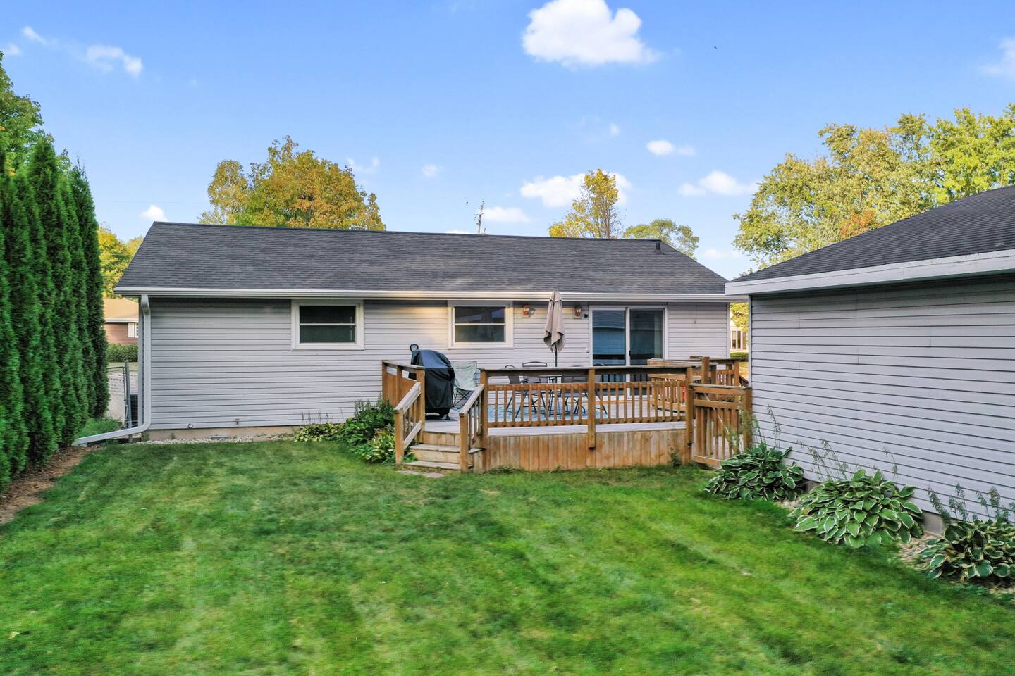Welcome to the spacious Roscoe Retreat home! This 2-bed offers ample living space for you to unwind. Enjoy the outdoors in the backyard with a deck. Whether you're in town for a game at Lambeau, Resch or just a visit, this one has all the amenities you need. Hi Speed internet and a washer and dryer for your convenience. The over sized garage is also available. The home is central to many attractions both in the city and its outskirts. Make yourself at home in this comfortable and inviting space!
