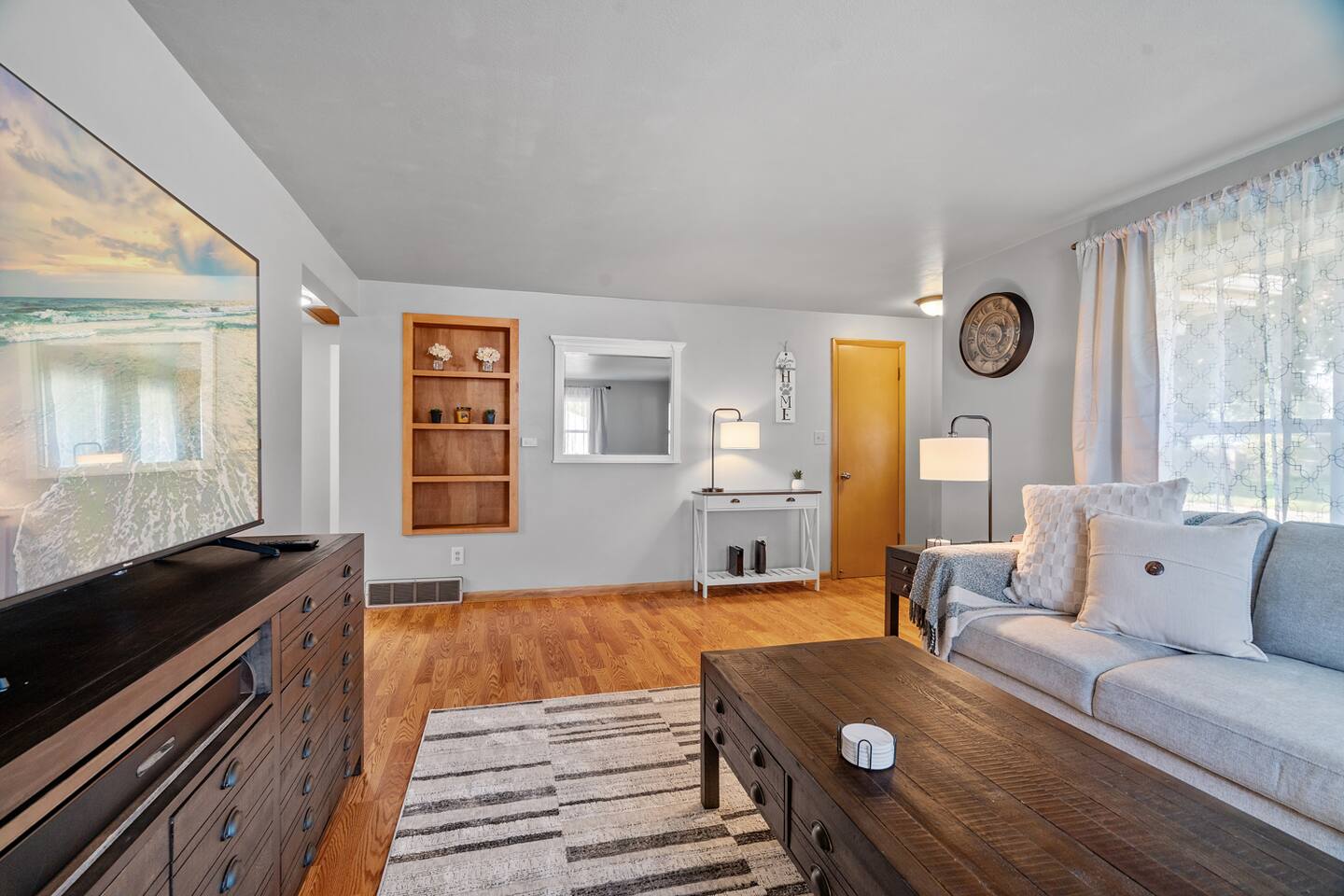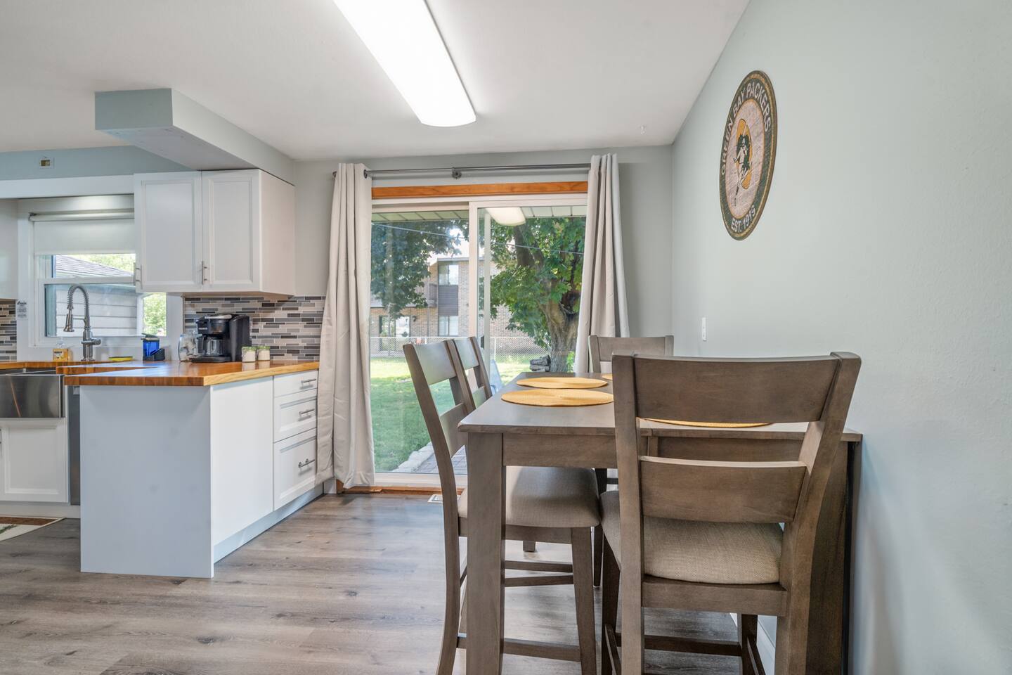 This charming home boasts a recently updated 2-bedroom, 1-bathroom main level. Situated in a central location, it offers convenience for those attending Lambeau, Resch or working anywhere in Green Bay. The accommodation includes 2 comfortable king-sized beds and a convertible couch for additional sleeping space. You'll find a fully equipped kitchen and a well-designed layout that ensures functionality and comfort. Enjoy the privacy of the fenced-in backyard, providing a serene retreat.