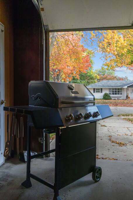 The grill is located in the garage, and grill utensils are located in the kitchen. Please let us know if you empty one the tank. Please clean the grill after use. A $25 fee will be applied if the cleaning team needs to clean the grill, as this is not part of their routine house cleaning.