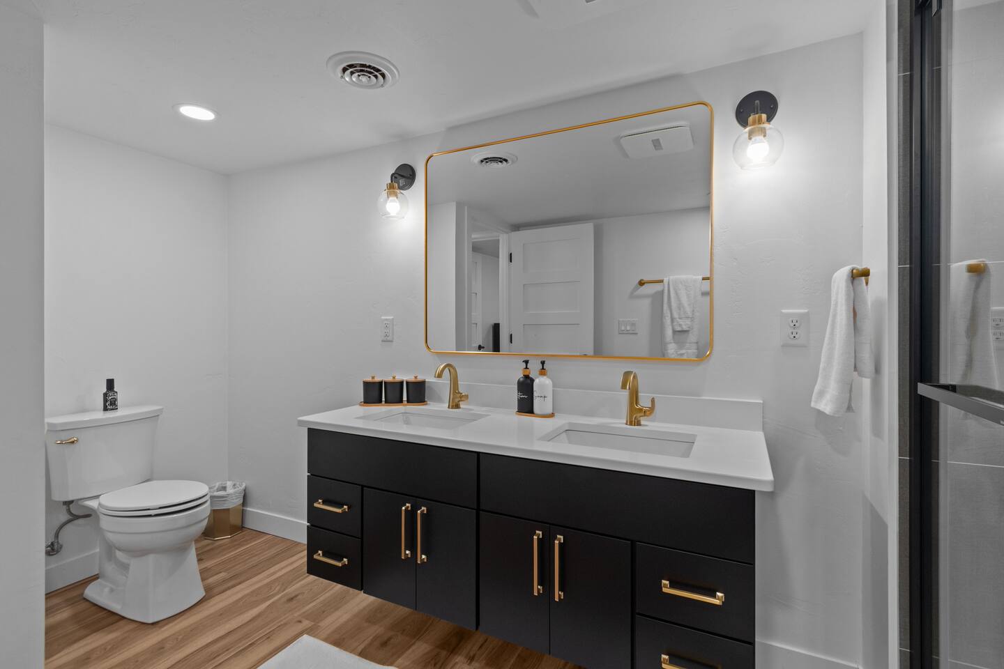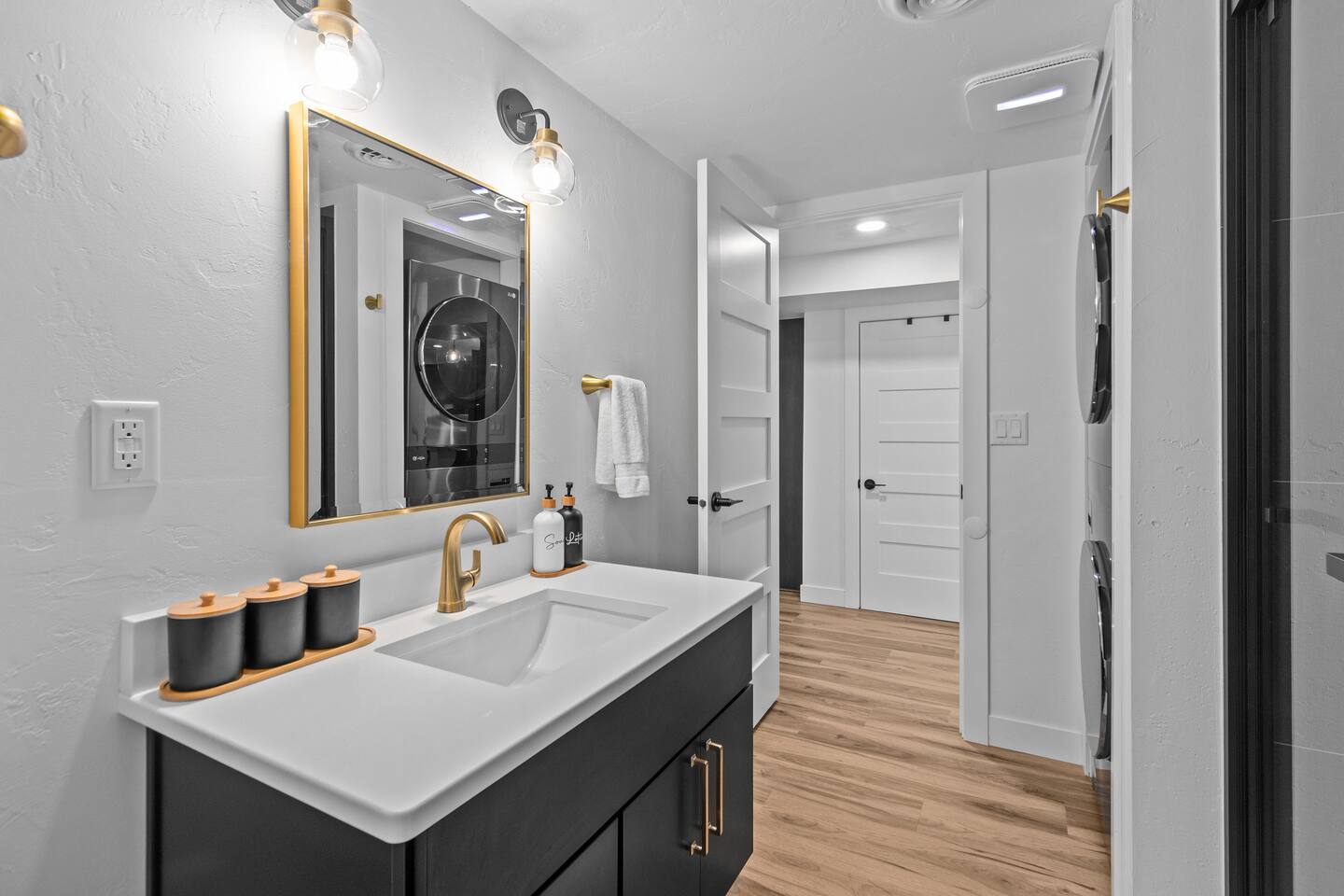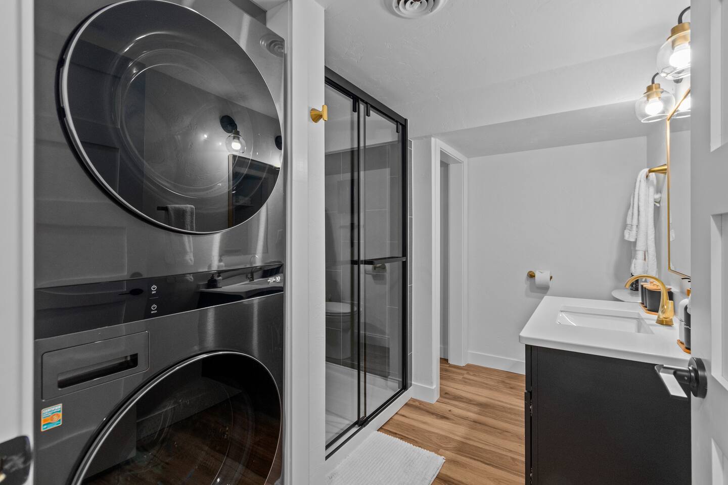 Bed 1: King Bed (sleeps 2). Pack N Play available for use during stay. Closet for storage. Bed 2: (2) Queen Beds (sleeps 2 each). Closet for storage. Provided Queen Air Mattress (sleeps 2) Bath 1: Full - With a double vanity and walk in shower. Bath 2: Full - With walk in shower and Full Laundry In unit Washer and Dryer. A supply of detergent and dryer sheets provided. Iron and Ironing Board as well.