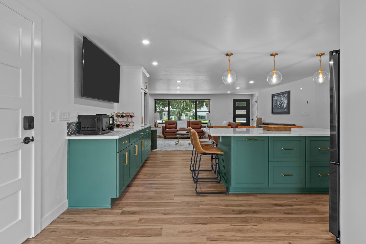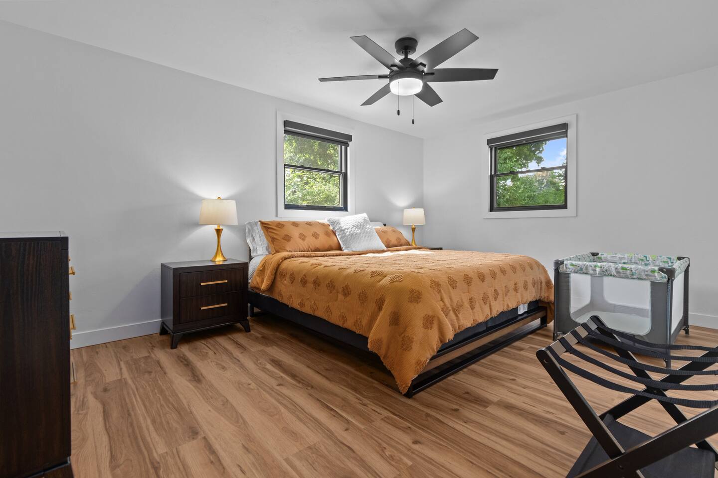 Spacious 5 BR, 5 BA home is a mere 2 blocks from Lambeau, Kroll's, and all the excitement of Titletown! The property combines two separate units into one large retreat, creating an expansive retreat that accommodates groups. Several spacious living areas offer room for relaxation or gatherings. Whether you're excited to walk to the game, explore GB, or use as a home base, this is ideal for your adventures. Embrace the perfect Green Bay getaway—you won’t want to leave!