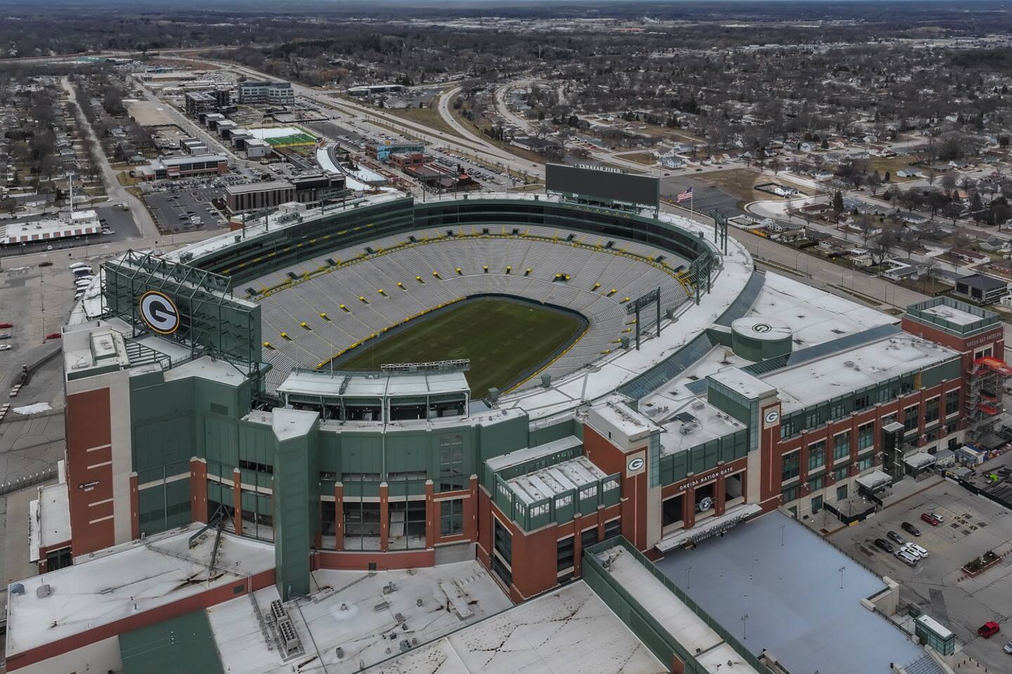 5 minute walk to Lambeau Field/Titletown Distric which includes: winter - ice skating, sledding Summer - Kids Playground & full football field with 2 goal posts.