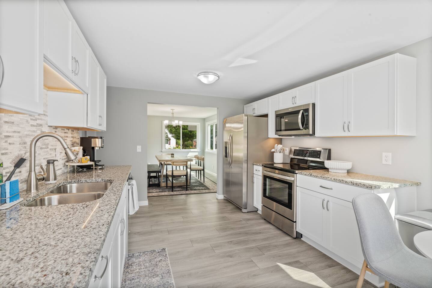 ✔ Four bedrooms ✔ Two bathrooms, conveniently located ✔ Quiet Residential Neighborhood ✔ Spacious Rec area with hi-top table, large tv and wine fridge with bar ✔ Fully equipped kitchen with modern appliances