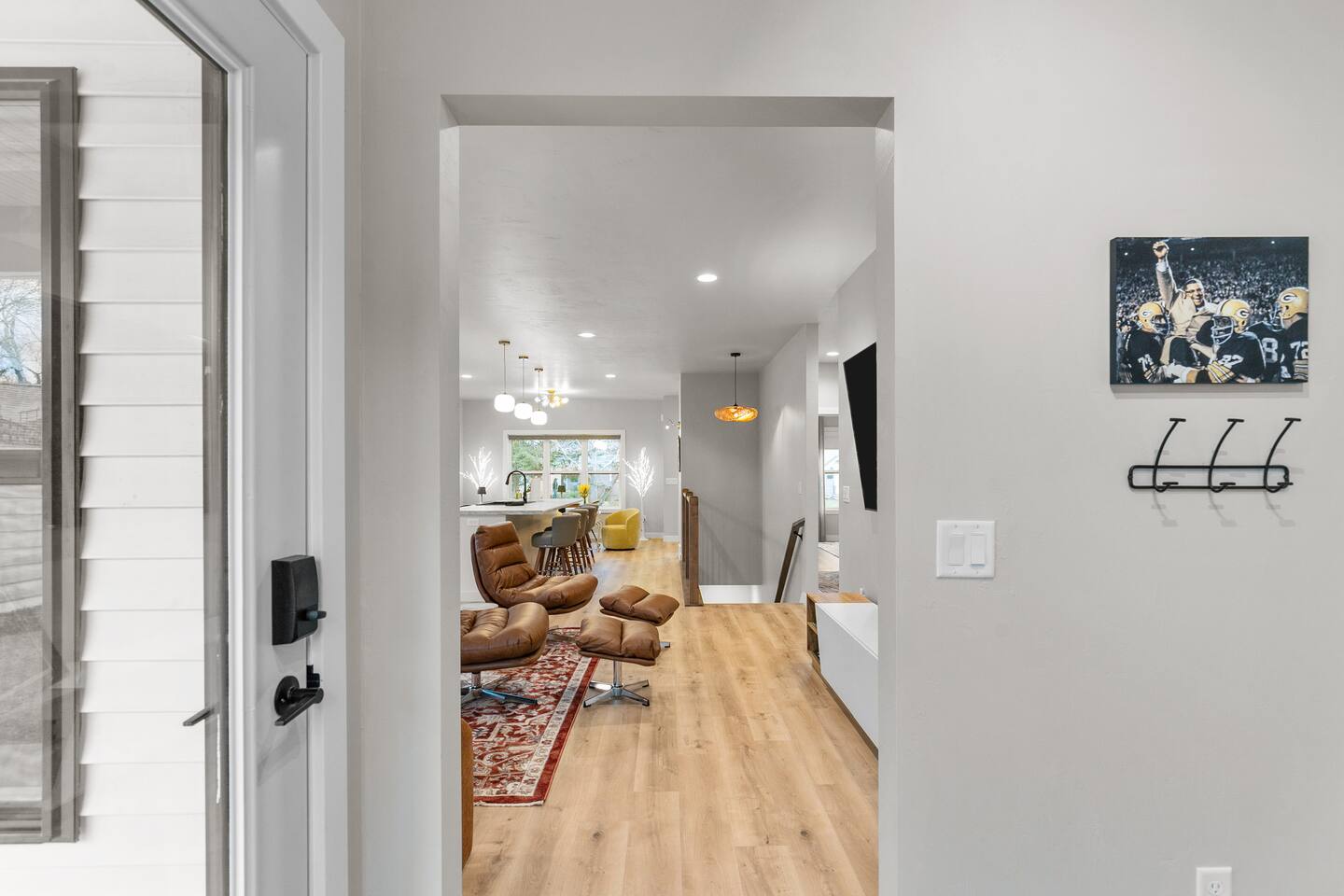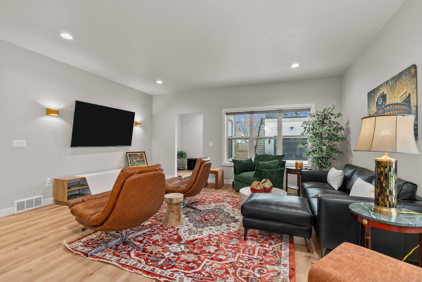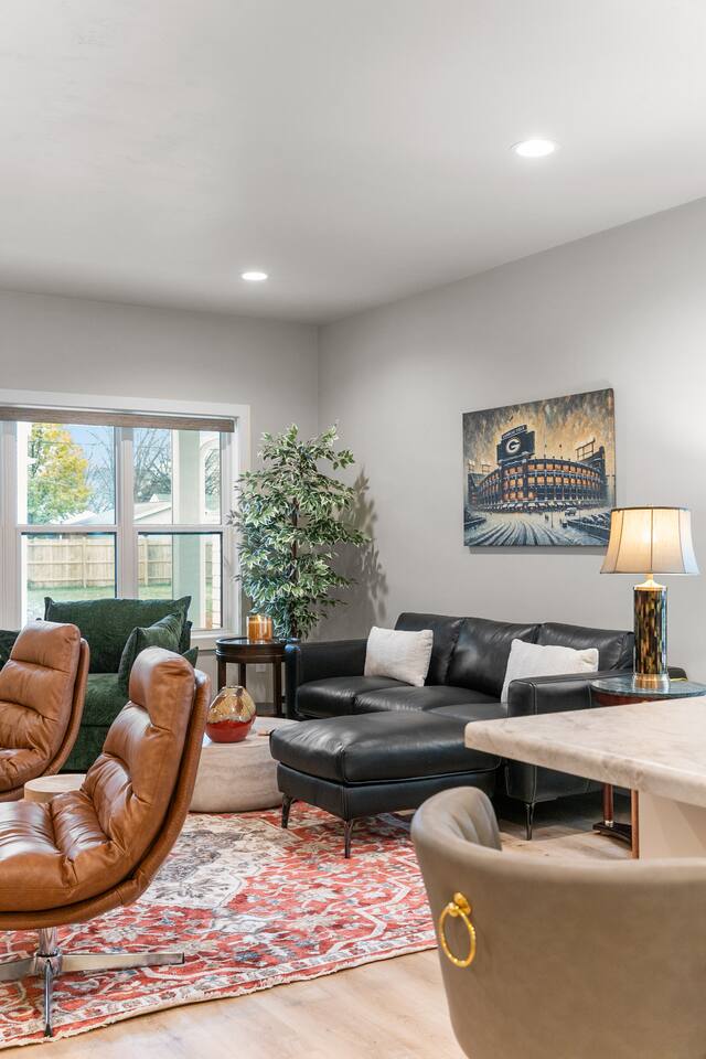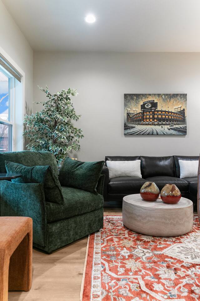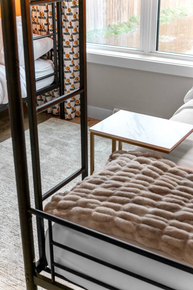 The ultimate GB experience with this new home situated just 4 blocks from legendary Lambeau Field and the Resch. Prime location puts you in the heart of the action, whether you're a football fan, here for a concert, or simply looking to explore. King bed with full ensuite bathroom. Open layout for convenient design. Equipped with all you need to whip up delicious meals. Unwind after a busy day on the expansive terrace atop the garage, where you can soak up the sun or simply take in the views.