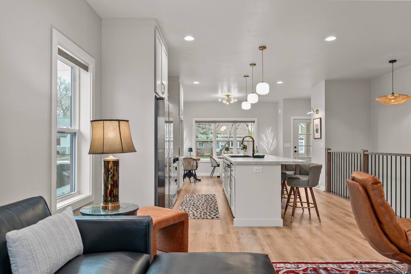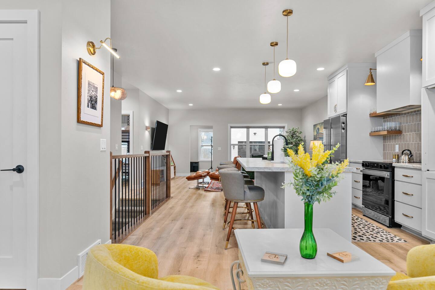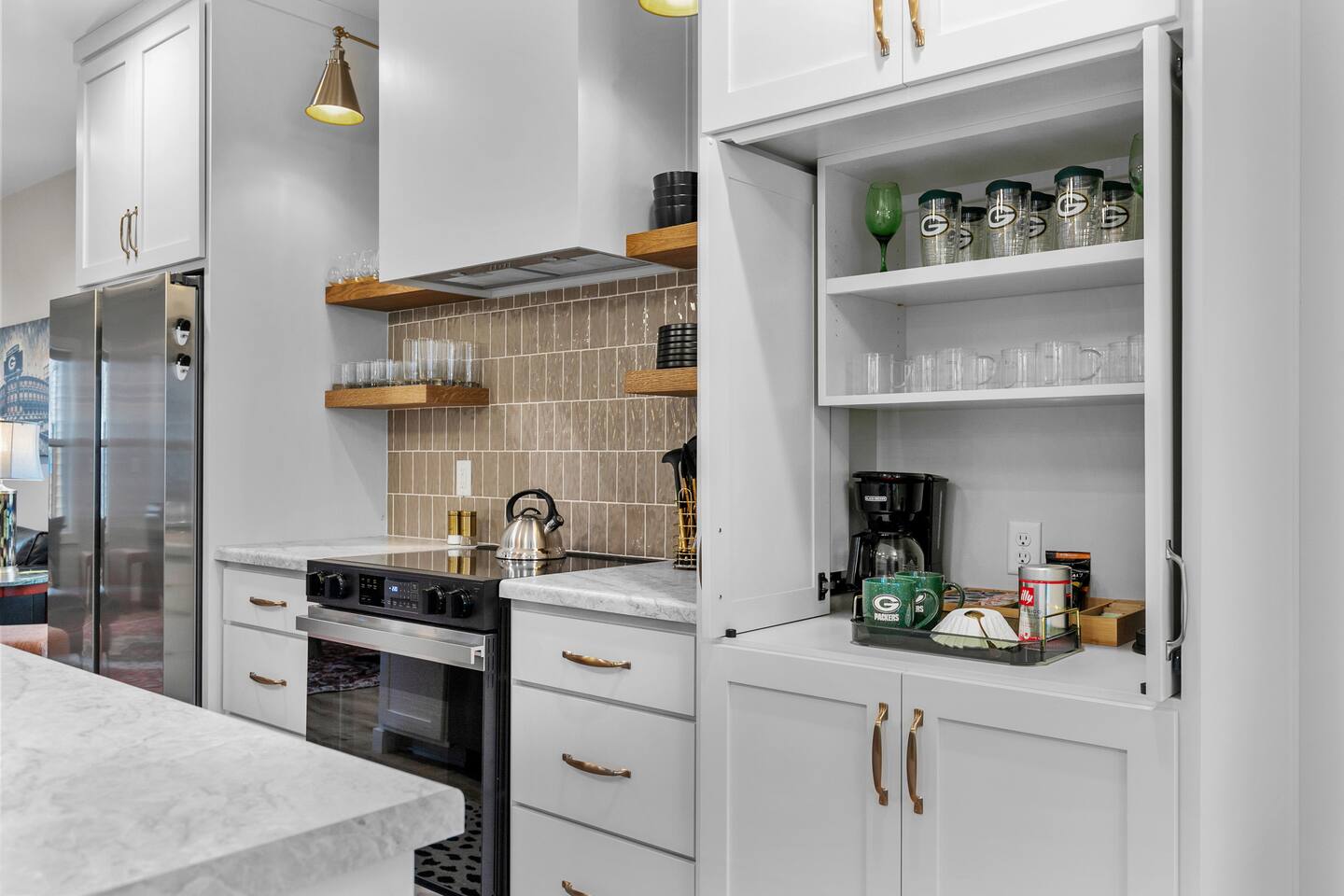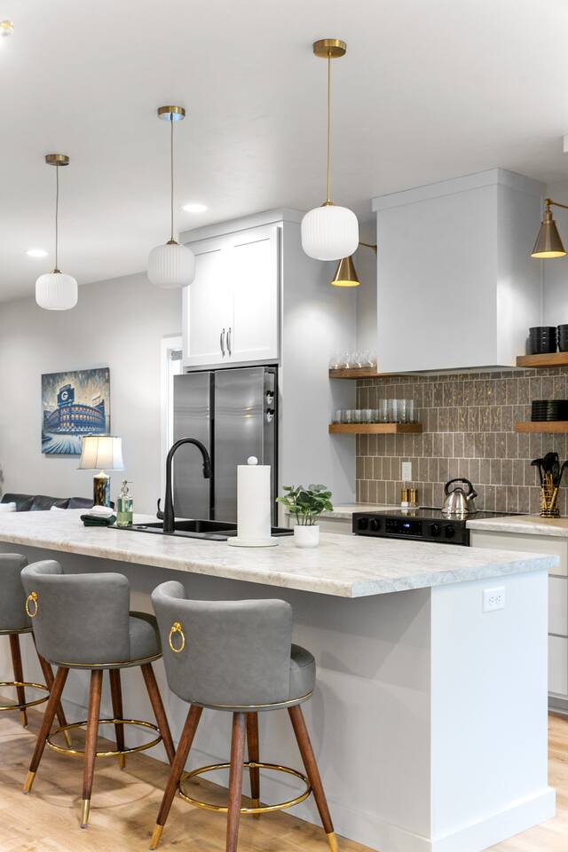 The ultimate GB experience with this new home situated just 4 blocks from legendary Lambeau Field and the Resch. Prime location puts you in the heart of the action, whether you're a football fan, here for a concert, or simply looking to explore. King bed with full ensuite bathroom. Open layout for convenient design. Equipped with all you need to whip up delicious meals. Unwind after a busy day on the expansive terrace atop the garage, where you can soak up the sun or simply take in the views.